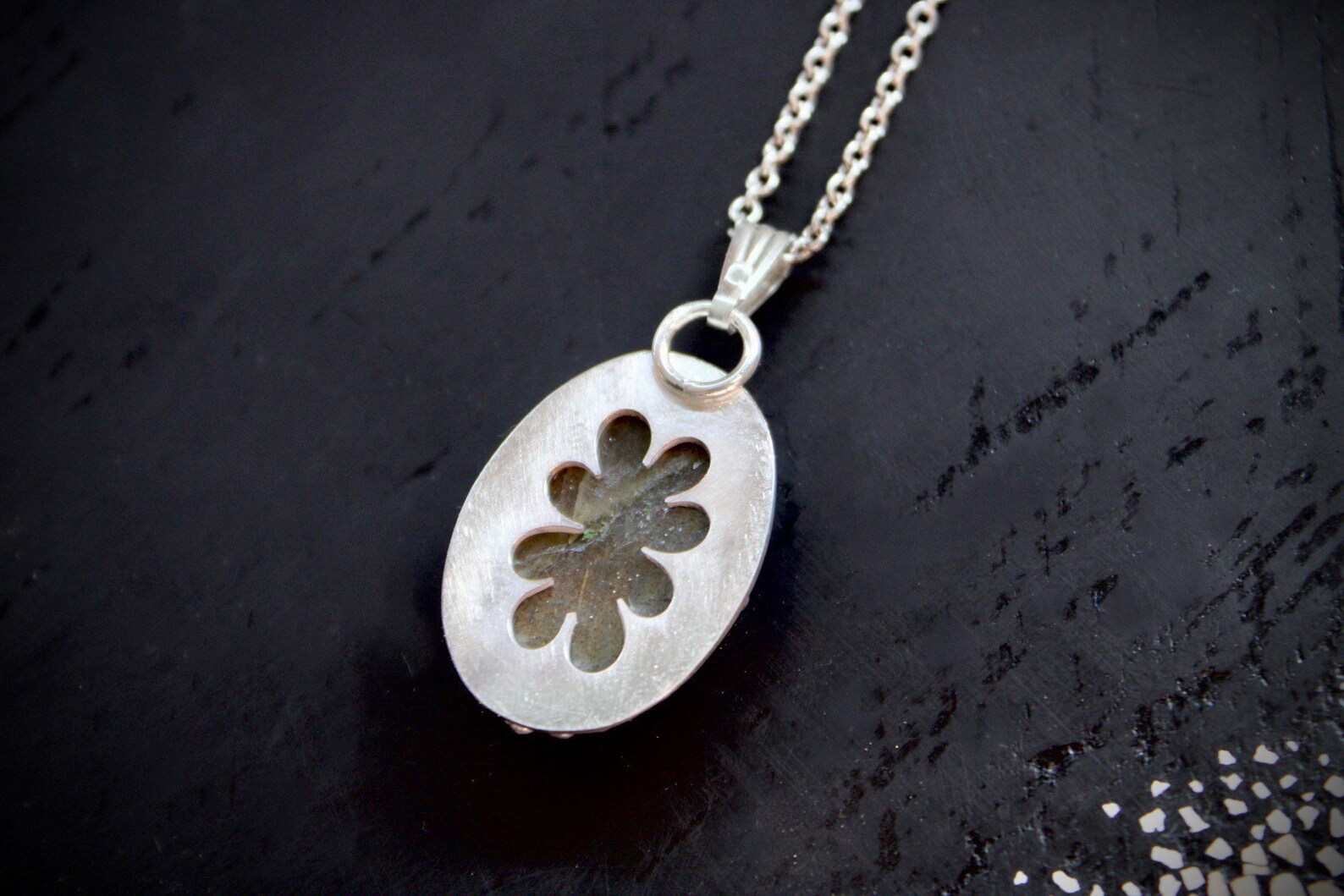 Pendentif en argent serti d'une labradorite argentée